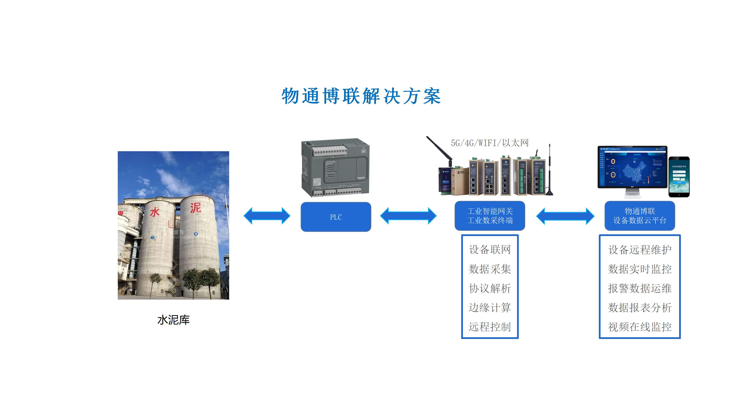 水泥行業無線數采是智能化轉型的基礎,通過“數據采集-傳輸-分析-應用”閉環,能夠推動生產從“經驗驅動”向“數據驅動”轉變,最終實現降本增效、綠色安全、管理升級的目標。對此,基于工業無線數采網關,物通博聯面向水泥行業全流程提供高效可靠的物聯網解決方案。