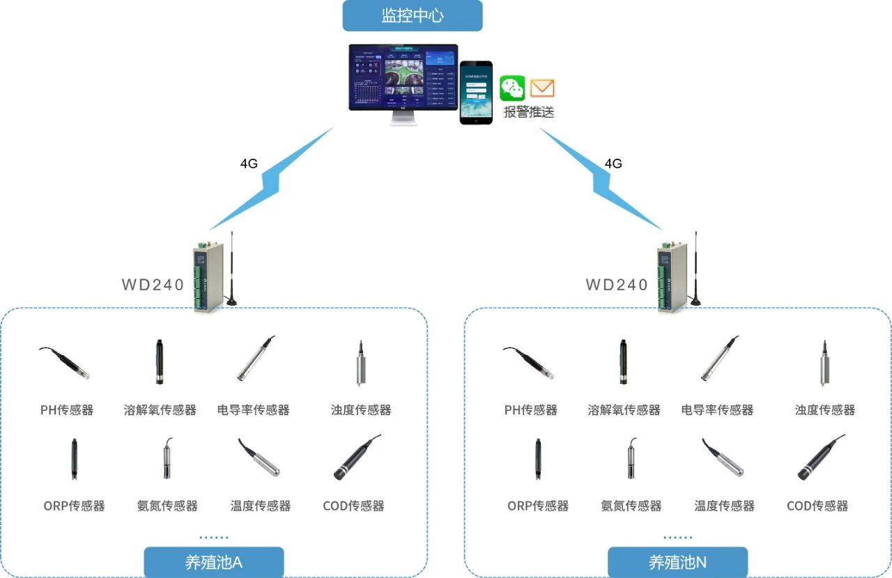 物聯網網關能夠實時采集水體環境參數、環控設備運行參數等,并通過5G/4G等方式對接到智慧養殖管理平臺中。當水質參數異常,自動通過微信、短信、郵件等方式進行通知,從而快速快速定位診斷及時管控,調整合適的設備參數與水域環境,確保養殖安全。