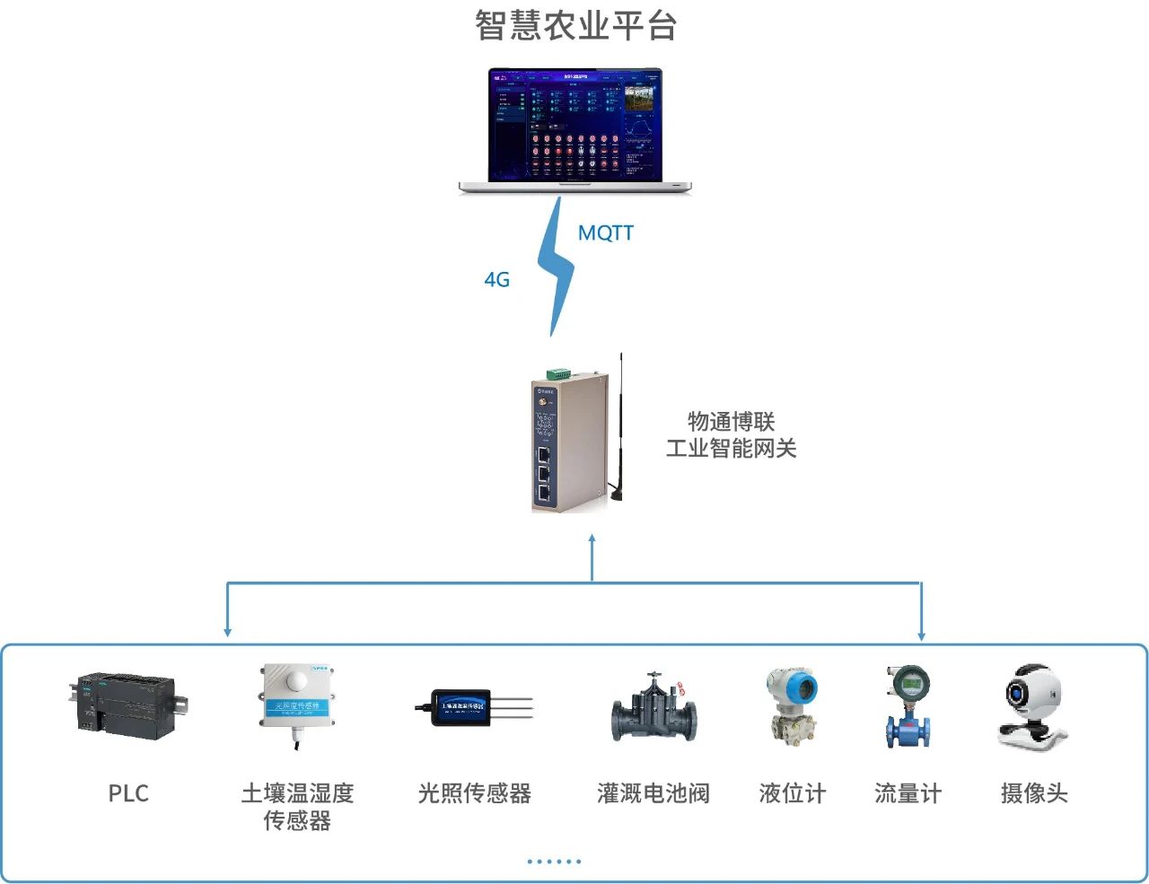 物聯網網關實現對氣象、蟲災、墑情等多源數據采集,并通過4G網絡對接到數字化管理平臺中。